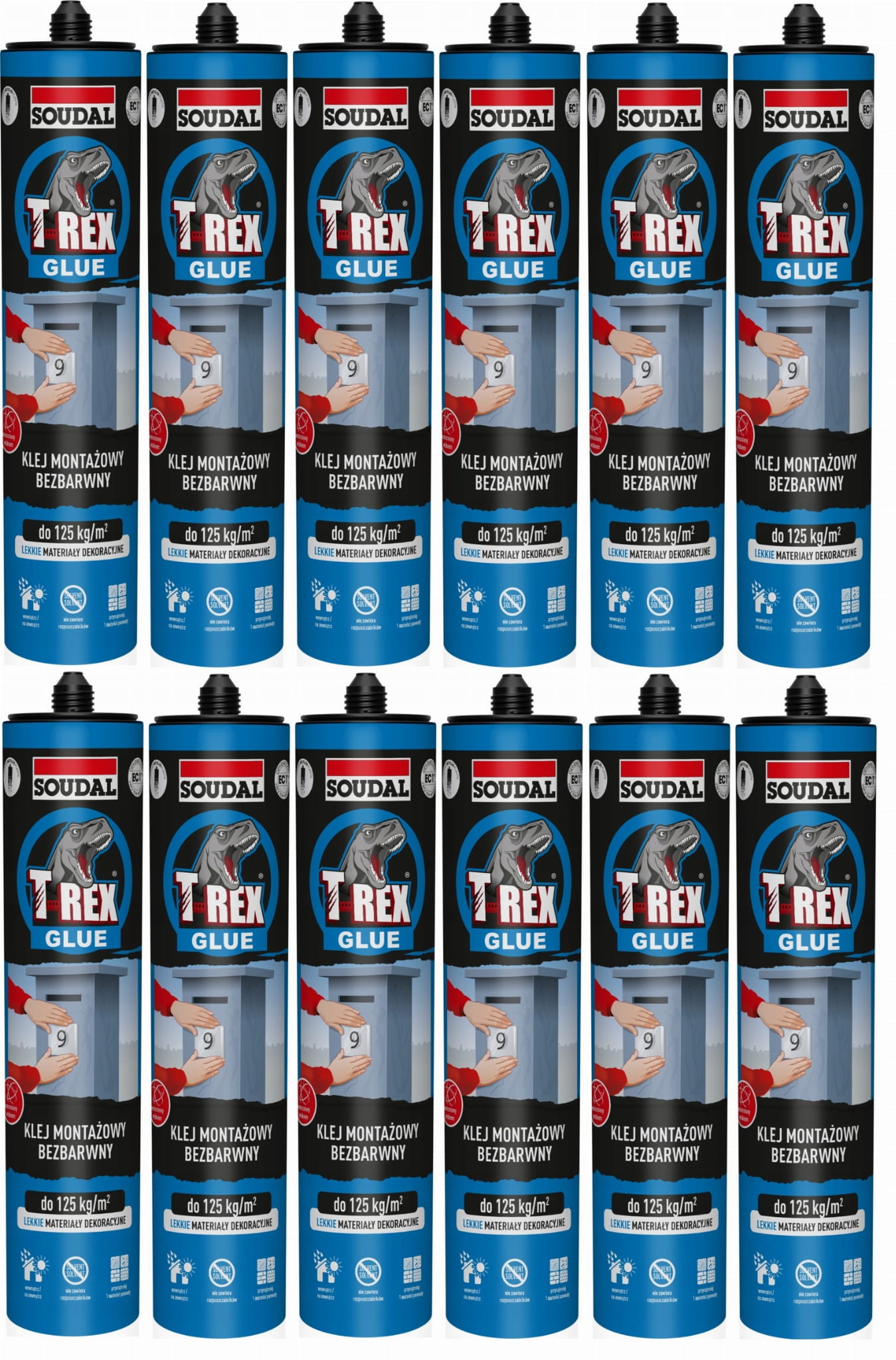 12 x SZTUK W KARTONIE T-REX KLEJ MONTAŻOWY BEZBARWNY