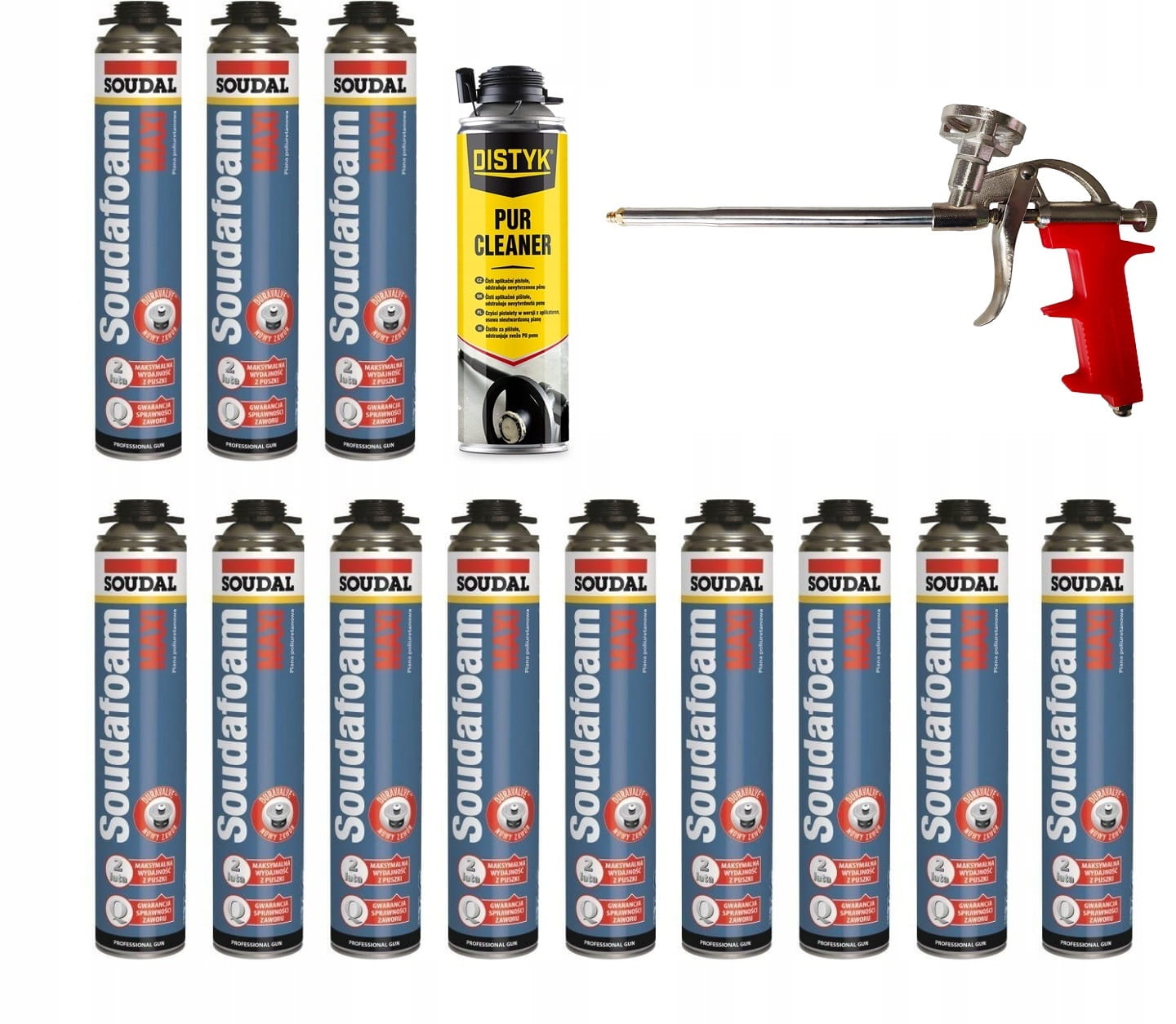 12x PIANKA SOUDAL MAXI + CZYŚCIK + PISTOLET