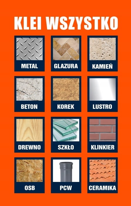 - uniwersalny klej do wewnątrz i na zewnątrz
