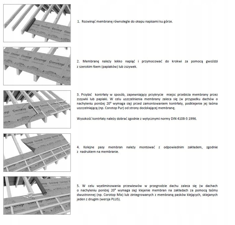 • wstępne krycie dachów skośnych, ocieplonych, wentylowanych
