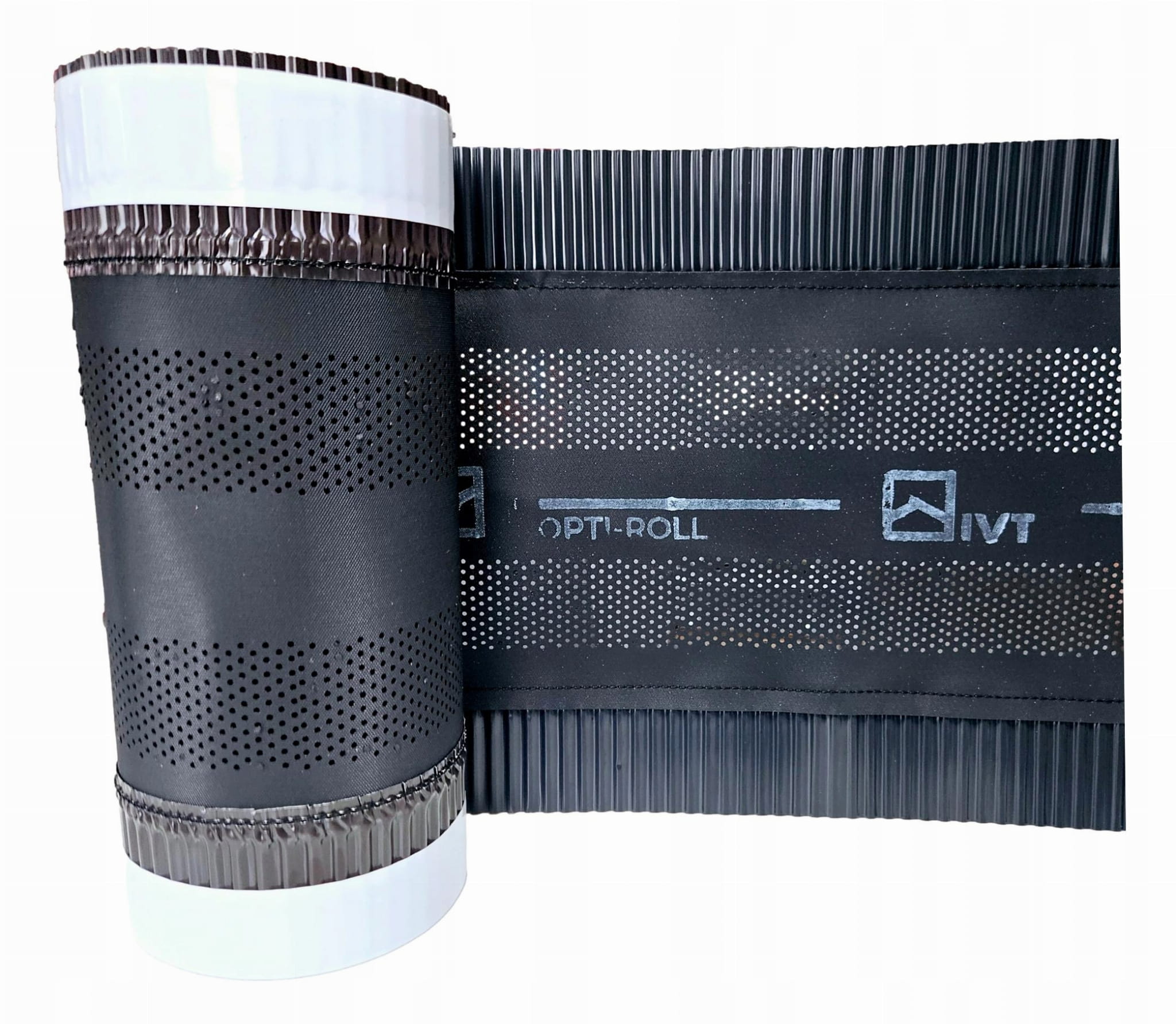 IVT OPTI-ROLL taśma kalenicowa wykonana z dwóch pasów plisowanego aluminium oraz wysokojakościowe EPDM odporne na promieniowanie UV i zmiany temperatury. Zapewnia łatwy montaż, dzięki butylowym pasom samoprzylepnym o szerokości 30 mm oraz elastycznym profilowanym brzegom. Odporna na uszkodzenia mechaniczne, czynniki atmosferyczne i promieniowanie UV.
