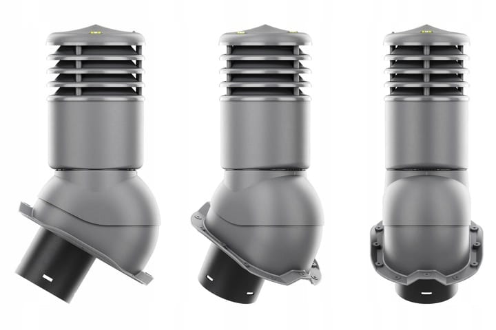 - Rura wywiewna - systemowy montaż przyłącza oraz prostopadłe ustawienie do kąta nachylenia dachu.