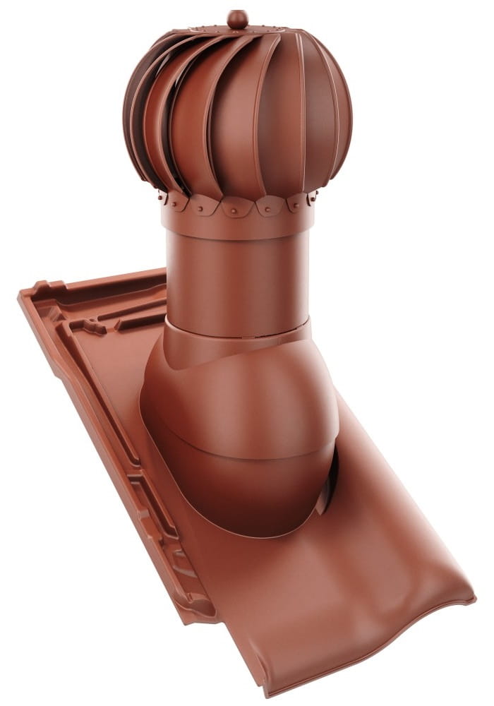Kompletny kominek obrotowy wentylacyjny z przejściem dachowym, montowany bezpośrednio na dachówkę betonową.