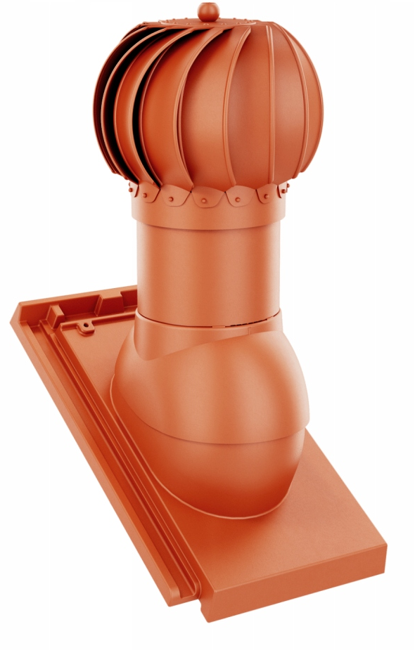 Kompletny kominek obrotowy wentylacyjny z przejściem dachowym, montowany bezpośrednio na dachówkę betonową.