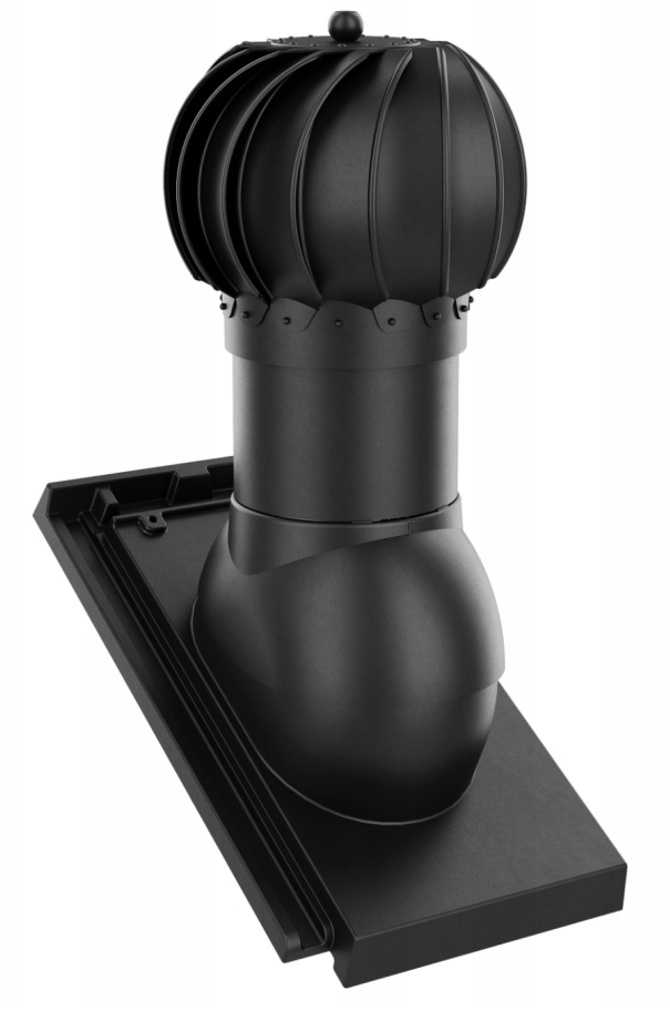 Kompletny kominek obrotowy wentylacyjny z przejściem dachowym, montowany bezpośrednio na dachówkę betonową.