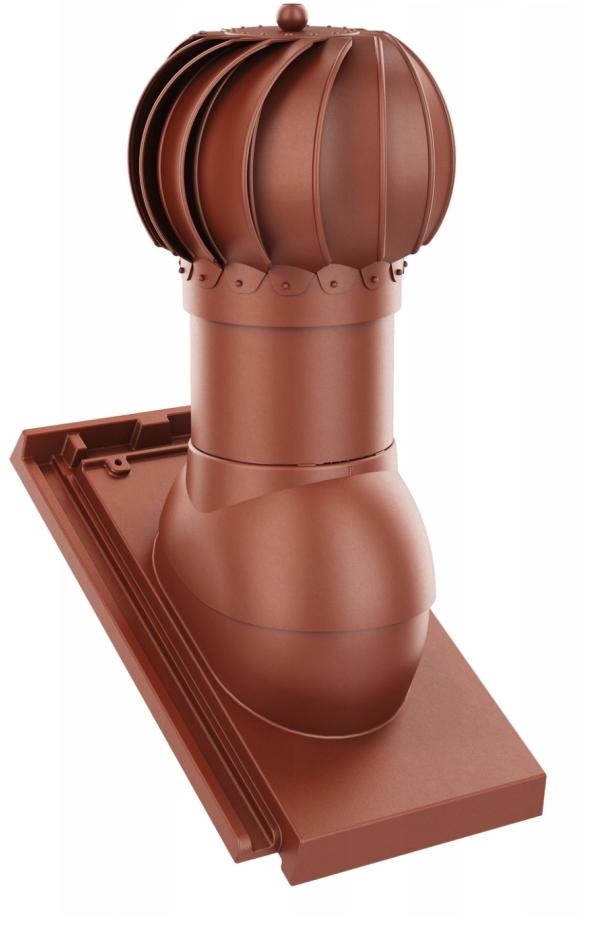Kompletny kominek obrotowy wentylacyjny z przejściem dachowym, montowany bezpośrednio na dachówkę betonową.