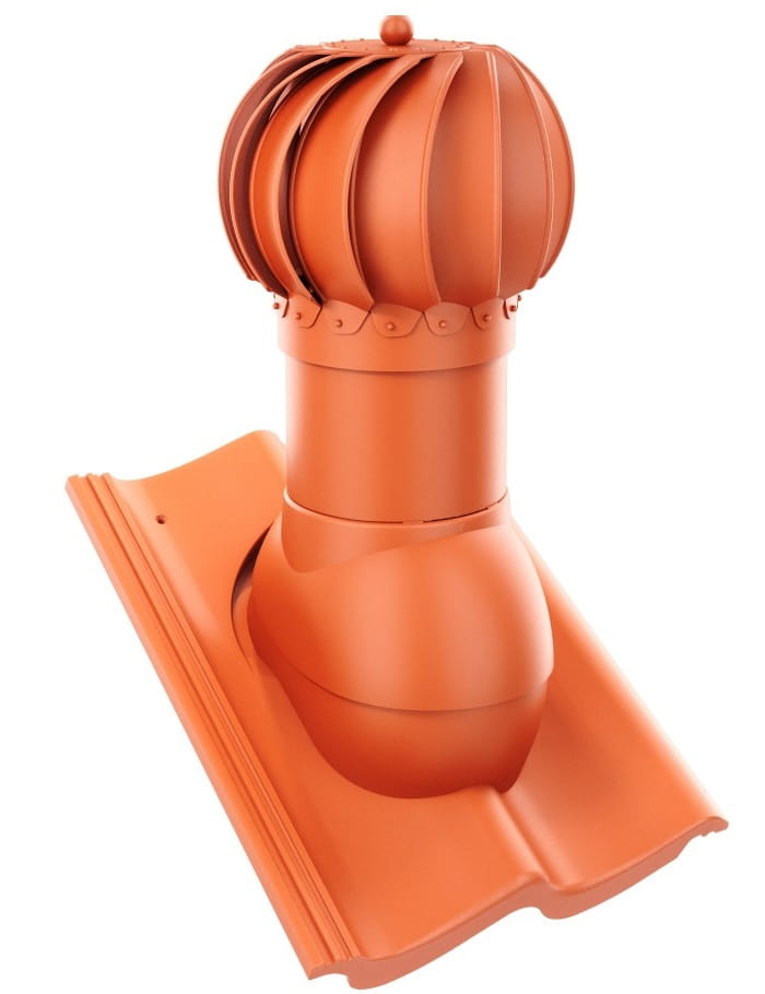 Kompletny kominek obrotowy wentylacyjny z przejściem dachowym, montowany bezpośrednio na dachówkę betonową.