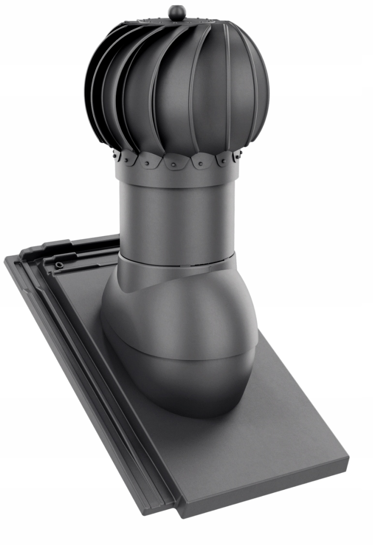 Kompletny kominek obrotowy wentylacyjny z przejściem dachowym, montowany bezpośrednio na dachówkę betonową.