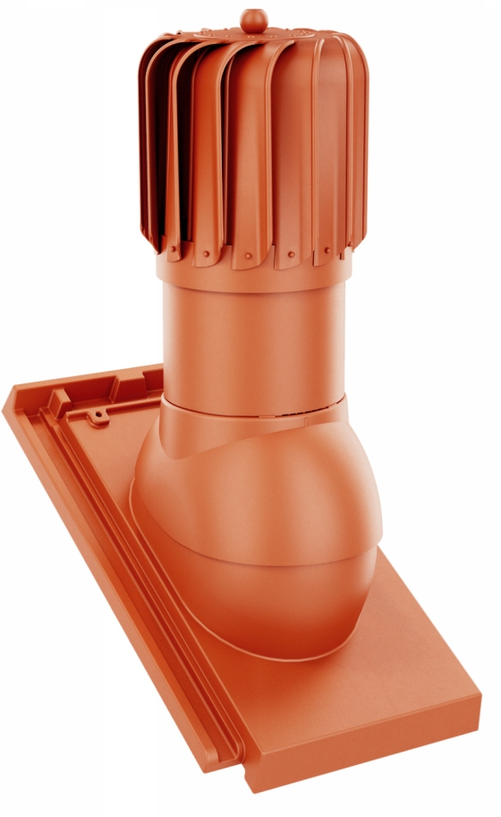 Kompletny kominek obrotowy wentylacyjny z przejściem dachowym, montowany bezpośrednio na dachówkę betonową.