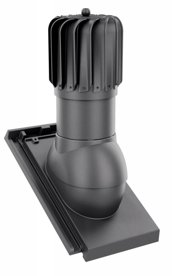 Kompletny kominek obrotowy wentylacyjny z przejściem dachowym, montowany bezpośrednio na dachówkę betonową.