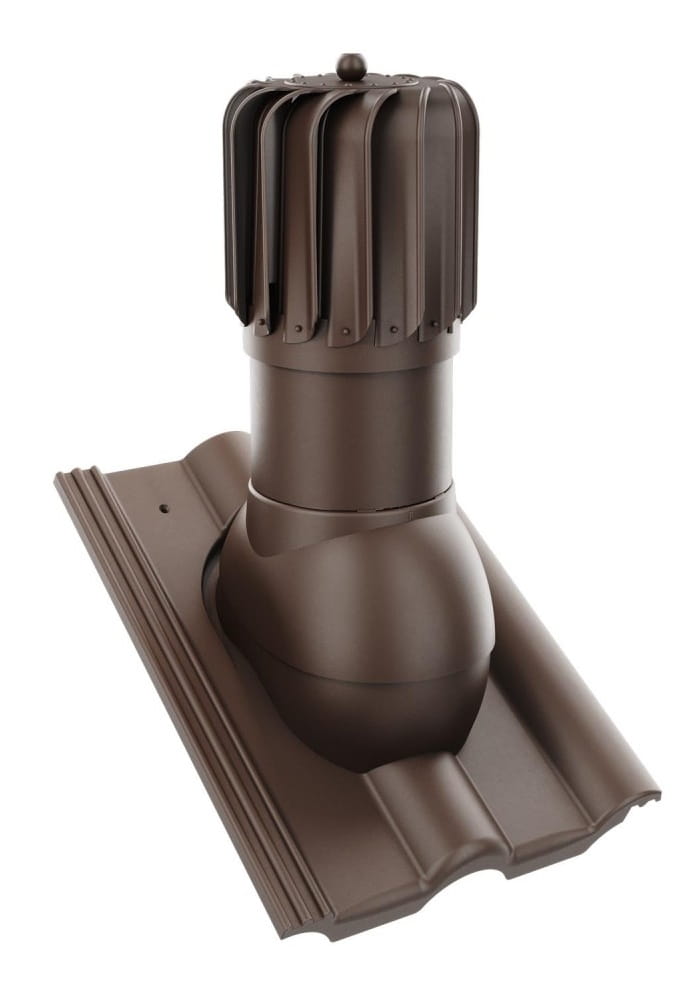 Kompletny kominek obrotowy wentylacyjny z przejściem dachowym, montowany bezpośrednio na dachówkę betonową.