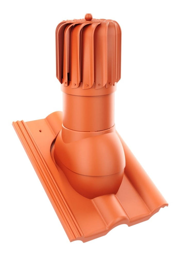 Kompletny kominek obrotowy wentylacyjny z przejściem dachowym, montowany bezpośrednio na dachówkę betonową.