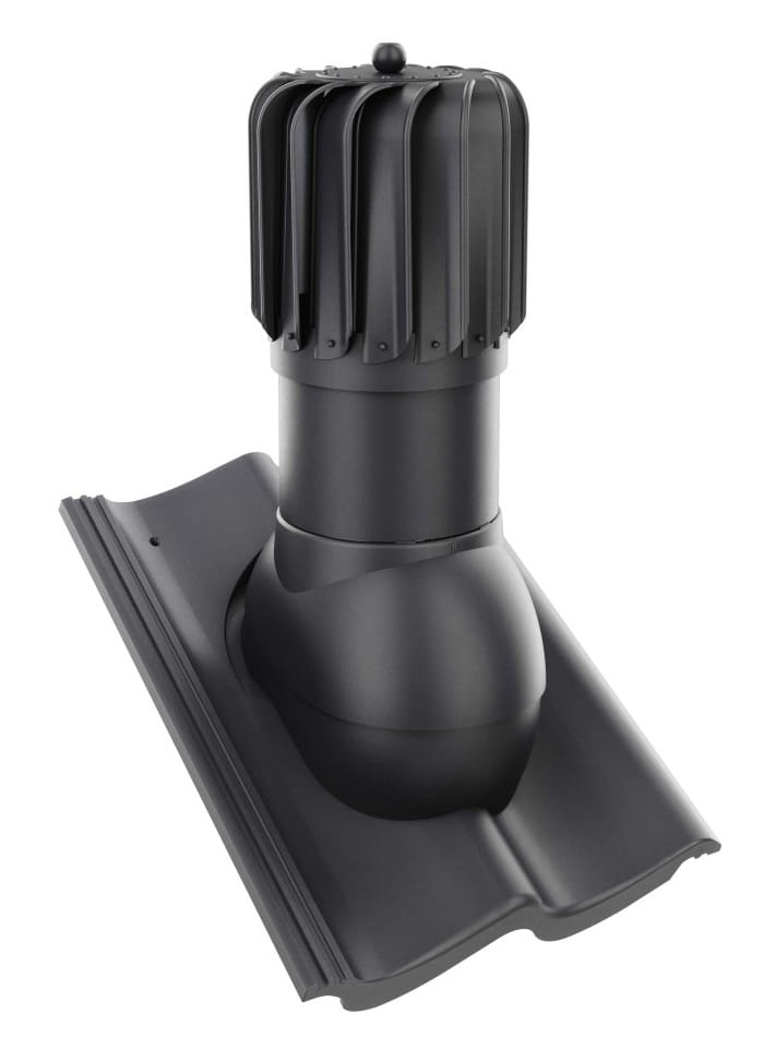 Kompletny kominek obrotowy wentylacyjny z przejściem dachowym, montowany bezpośrednio na dachówkę betonową.