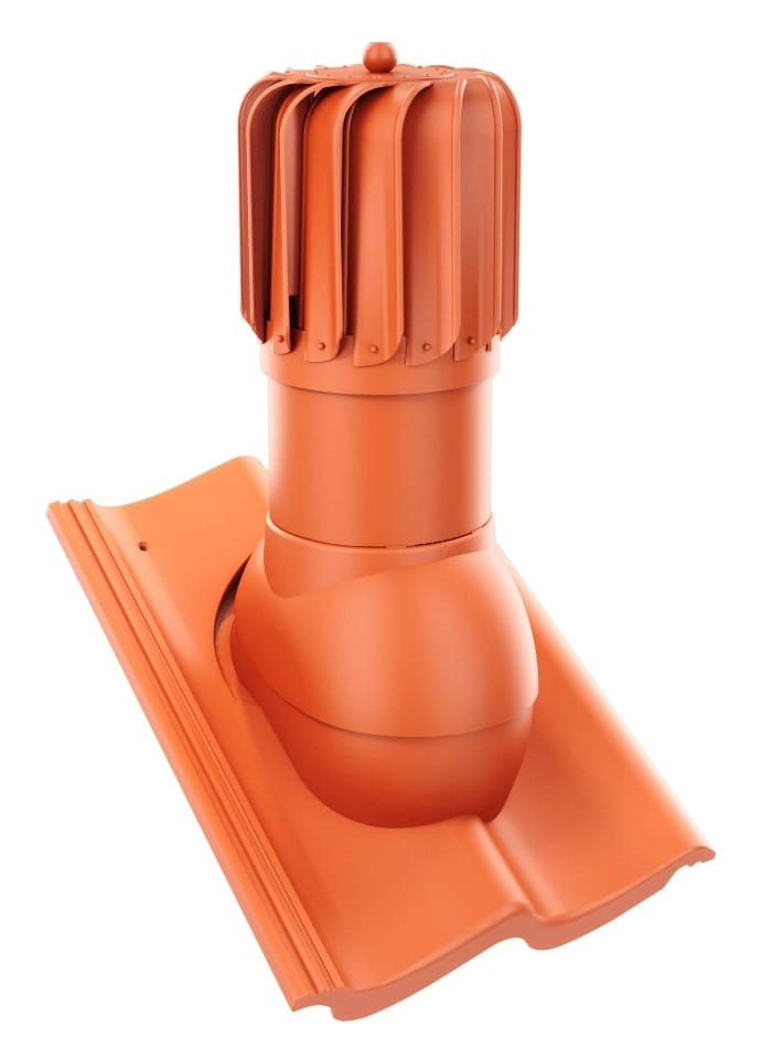 Kompletny kominek obrotowy wentylacyjny z przejściem dachowym, montowany bezpośrednio na dachówkę betonową.