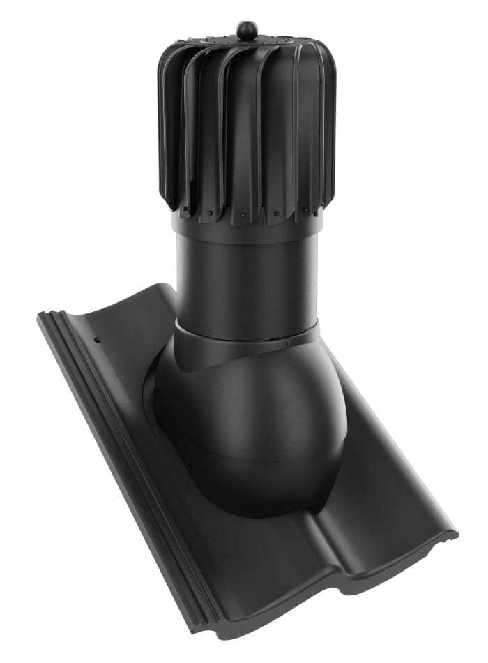 Kompletny kominek obrotowy wentylacyjny z przejściem dachowym, montowany bezpośrednio na dachówkę betonową.