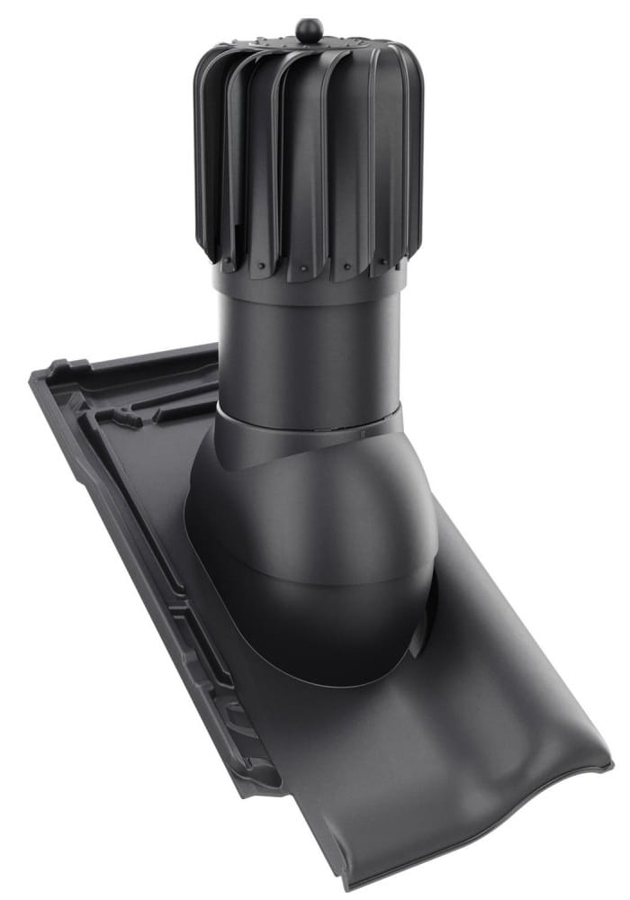 Kompletny kominek obrotowy wentylacyjny z przejściem dachowym, montowany bezpośrednio na dachówkę betonową.