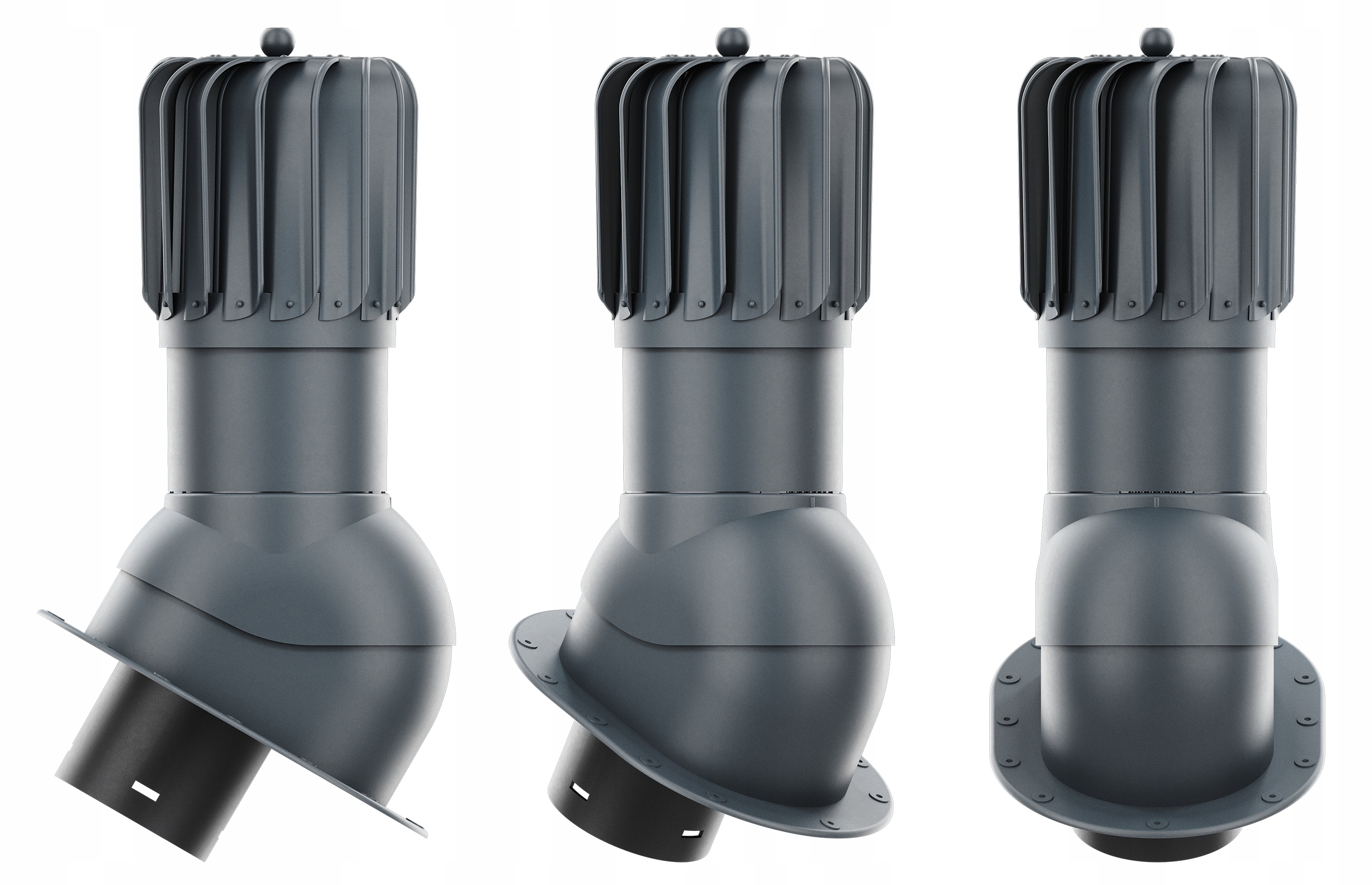 Kompletny Kominek Obrotowy Rotoline wentylacyjny z przejściem dachowym, montowany bezpośrednio na istniejące pokrycie płaskie.