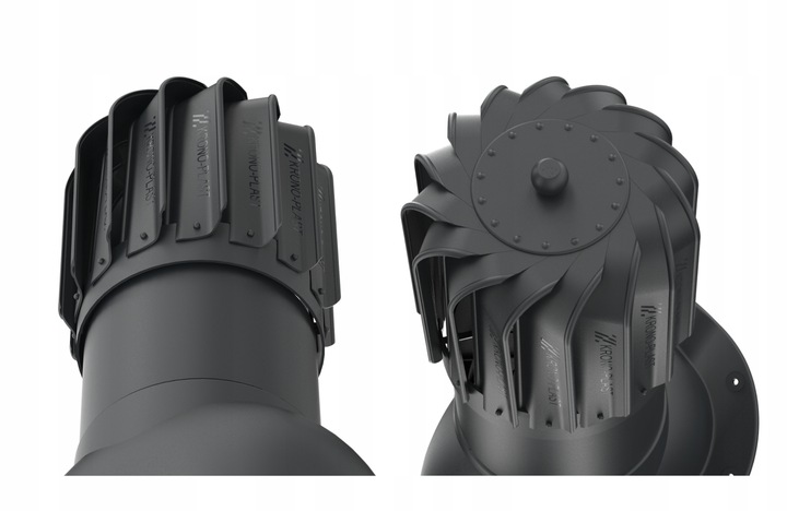 - Nasada obrotowa - wytwarza podciśnienie, zwiększając ciąg w kanale wentylacyjnym oraz ogranicza występowanie tzw. ciągu wstecznego.