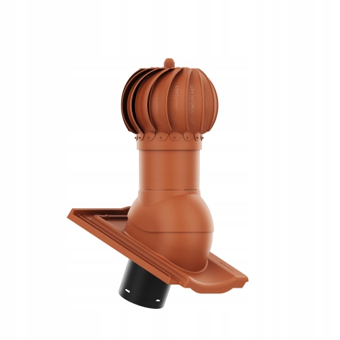 Kompletny kominek obrotowy wentylacyjny z przejściem dachowym, montowany bezpośrednio na dachówkę ceramiczną.
