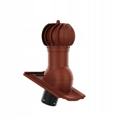 Kompletny kominek obrotowy wentylacyjny z przejściem dachowym, montowany bezpośrednio na dachówkę ceramiczną.