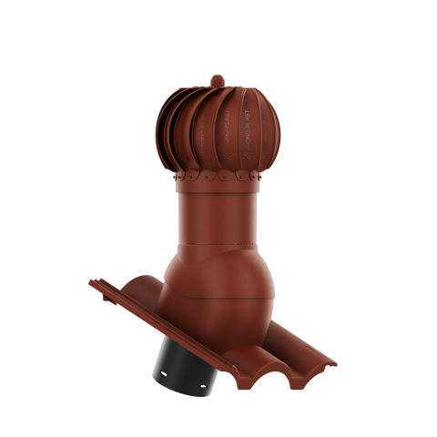 Kompletny kominek obrotowy wentylacyjny z przejściem dachowym, montowany bezpośrednio na dachówkę betonową.