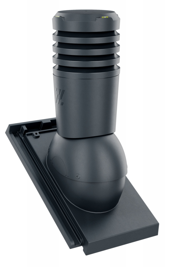 Kominek Wentylacyjny EcoLine Premium - jest usprawnioną wersją tradycyjnego modelu, wzbogaconą o odpływ kondensatu, poziomice ułatwiające montaż oraz rurę wywiewną zapewniającą pionowe przejście przez połać dachową, średnica 150 pozwala na bardziej wydajny przepływ powietrza, zapewniając tym samym podwyższoną sprawność wentylacji. Konstrukcja kominka wyposażona jest w 4 pierścienie, specjalnie zaprojektowane co zapobiega przedostawaniu się wody oraz wiatru gwarantujące optymalną cyrkulację nawiewu.