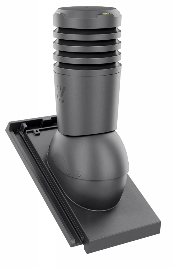 Kominek Wentylacyjny EcoLine Premium - jest usprawnioną wersją tradycyjnego modelu, wzbogaconą o odpływ kondensatu, poziomice ułatwiające montaż oraz rurę wywiewną zapewniającą pionowe przejście przez połać dachową, średnica 150 pozwala na bardziej wydajny przepływ powietrza, zapewniając tym samym podwyższoną sprawność wentylacji. Konstrukcja kominka wyposażona jest w 4 pierścienie, specjalnie zaprojektowane co zapobiega przedostawaniu się wody oraz wiatru gwarantujące optymalną cyrkulację nawiewu.