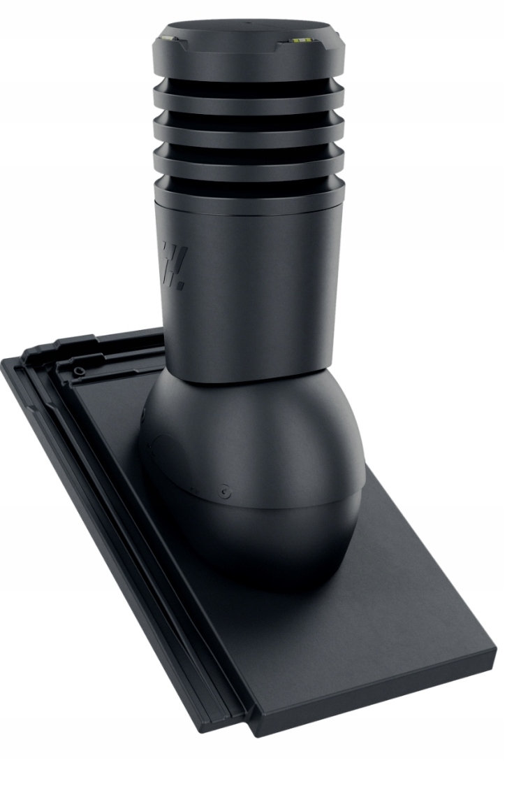 Kominek Wentylacyjny EcoLine Premium - jest usprawnioną wersją tradycyjnego modelu, wzbogaconą o odpływ kondensatu, poziomice ułatwiające montaż oraz rurę wywiewną zapewniającą pionowe przejście przez połać dachową, średnica 150 pozwala na bardziej wydajny przepływ powietrza, zapewniając tym samym podwyższoną sprawność wentylacji. Konstrukcja kominka wyposażona jest w 4 pierścienie, specjalnie zaprojektowane co zapobiega przedostawaniu się wody oraz wiatru gwarantujące optymalną cyrkulację nawiewu.