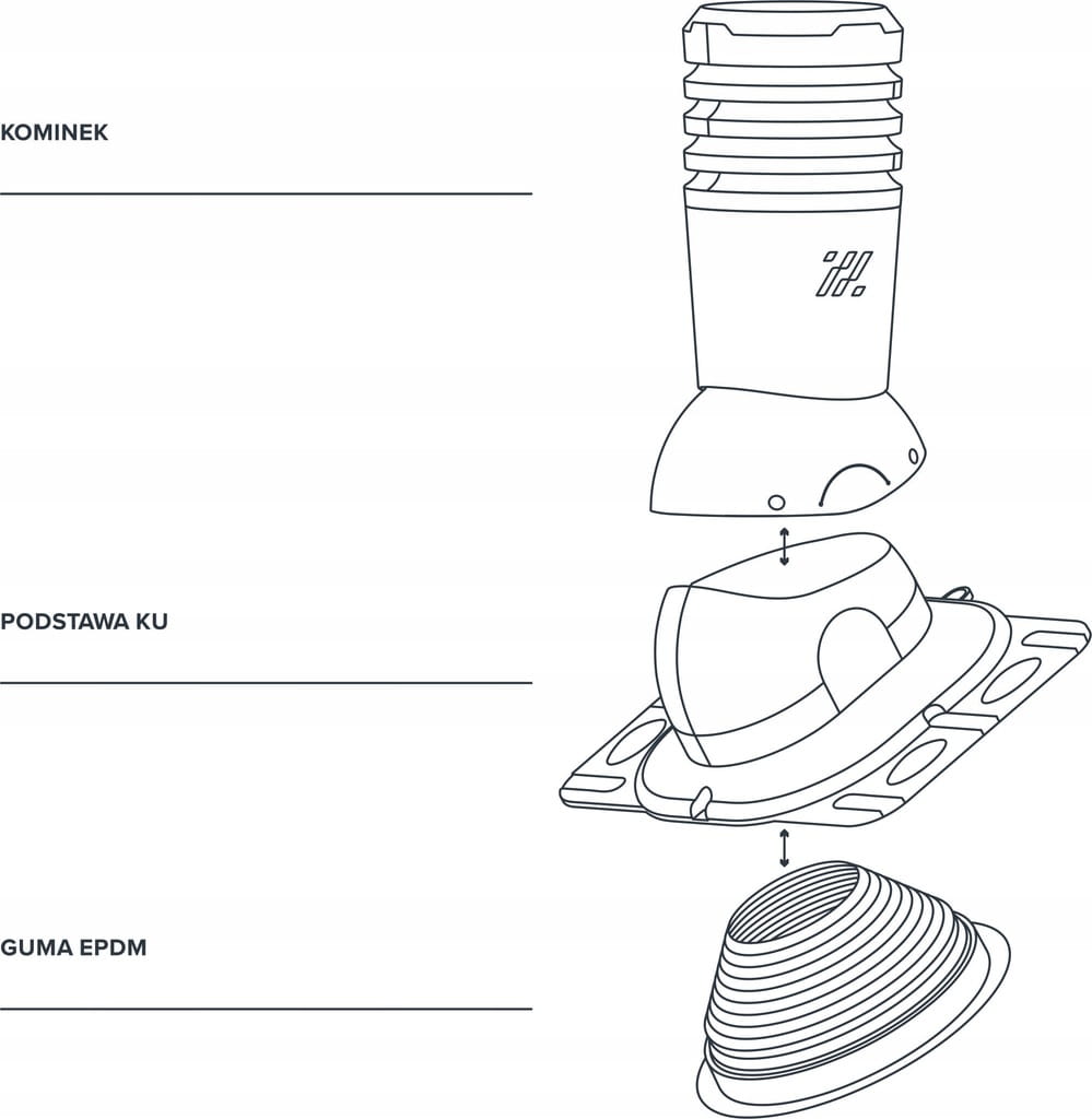 - Skraplacz - służy do wychwytywania wykroplonej pary wodnej z przestrzeni pomiędzy kominkiem a pokryciem dachowym. Zastosowanie skraplacza ogranicza do minimum ryzyko cofnięcia się skroplin do kanału wentylacyjnego. (skraplacze kondensatu sprzedawane oddzielnie)