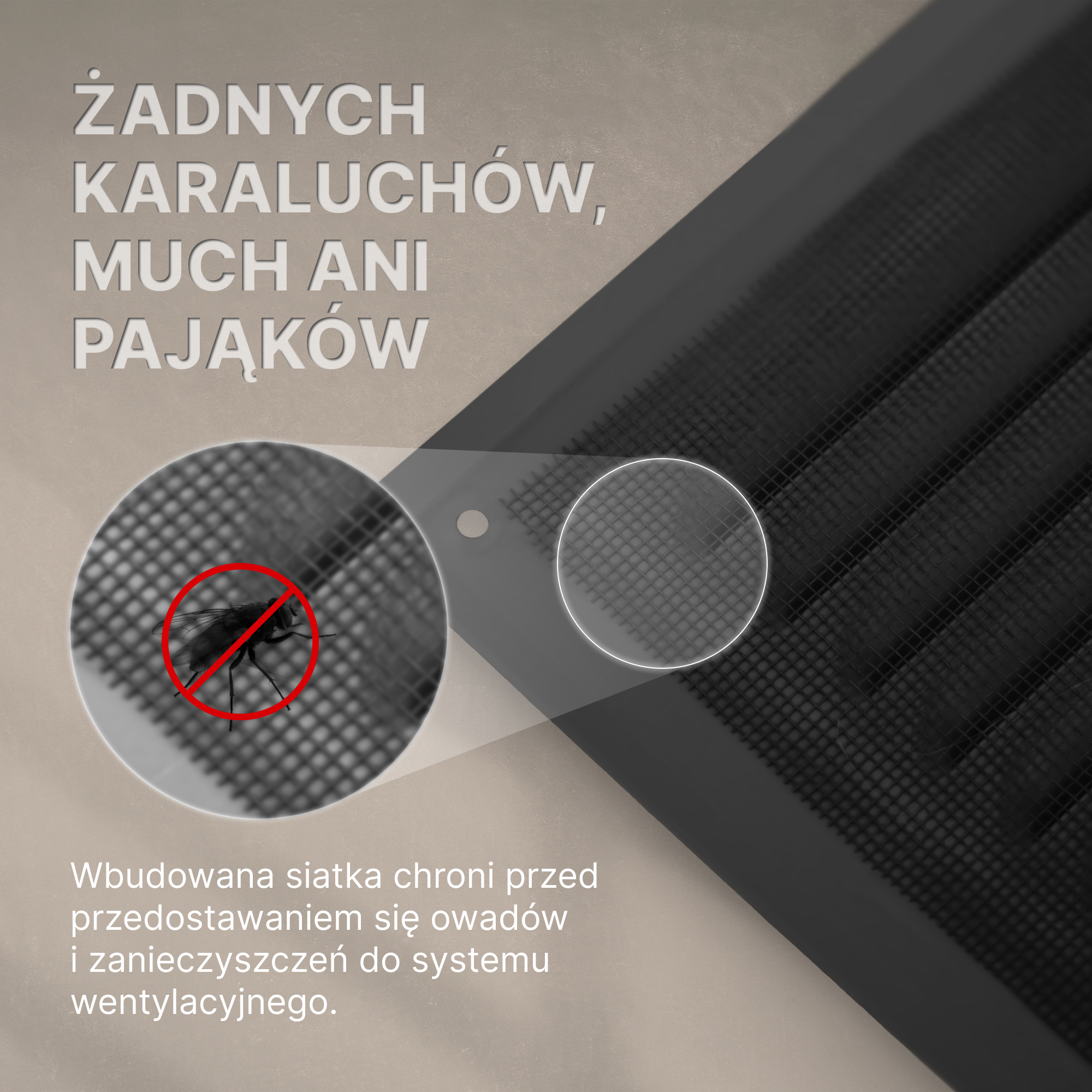 Kratki wentylacyjne z blachy aluminiowe powlekanej 0,6 mm z renomowanych hut takich jak Arcelor Mittal, Marcegaglia odpornej na warunki atmosferyczne (blachy powlekane stosowane są do produkcji dachów) oraz drobną siatką przed dostawaniem się robactwa. Kratki tłoczone są na prasach przy nacisku 40T, cała obróbka blachy jest na zimno więc nie ma obawy że rdzeń blachy został przegrzany.