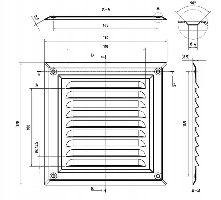 Wymiary: 170 mm x 170 mm