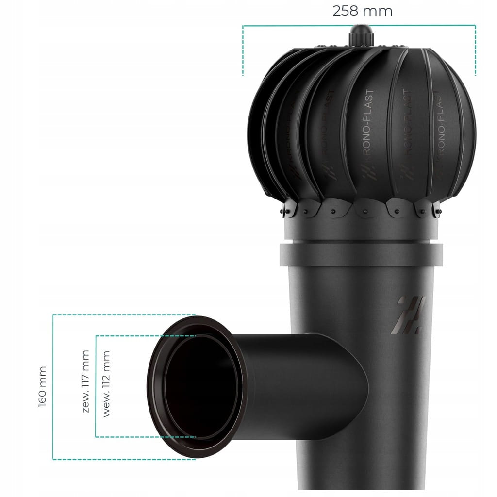 - Nasada obrotowa - Lekkie i wyprofilowane łopatki zapewniające cichą i wydajną pracę nasady, nawet przy najmniejszym wietrze. Dodatkowy wewnętrzny wirnik zwiększający wyciąg nasady.