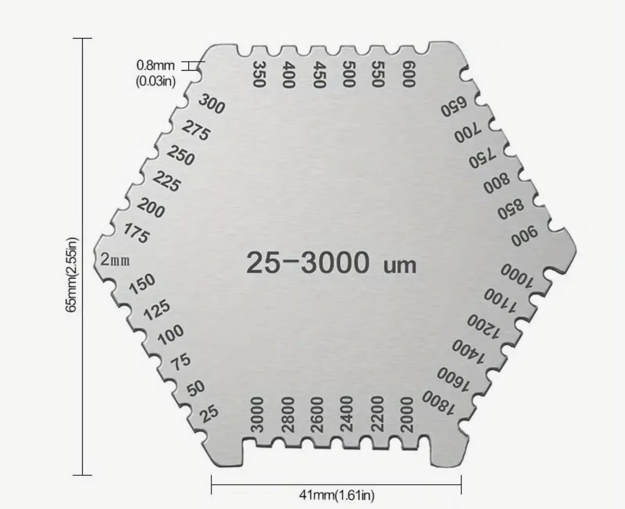 Miernik Grubości Powłoki Grzebień Pomiarowy 25-3000µm