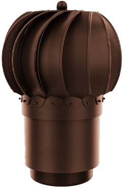 - Turbiny z tworzywa PP na łożysku kulkowym INOX zalanym najwyższej jakości olejem, zakończonej otworem fi 150 z redukcją fi 110 do zakończenia kanałów wentylacyjnych