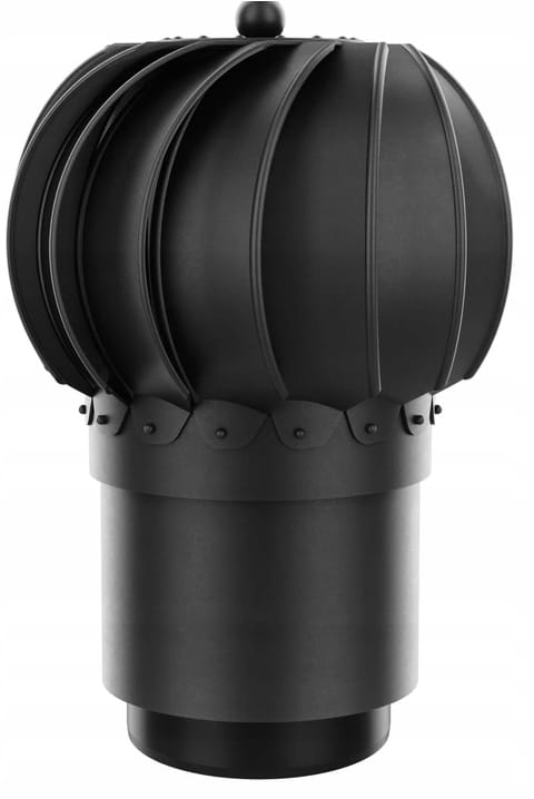 • Turbiny z tworzywa PP na łożysku kulkowym INOX zalanym najwyższej jakości olejem, zakończonej otworem fi 150 z redukcją fi 125 do zakończenia kanałów wentylacyjnych
