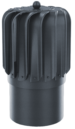 - Turbiny z tworzywa PP na łożysku kulkowym INOX zalanym najwyższej jakości olejem, zakończonej otworem fi 150 do zakończenia kanałów wentylacyjnych