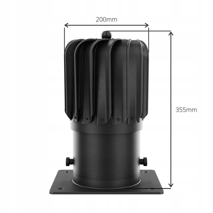 - Turbiny z tworzywa PP na łożysku kulkowym INOX zalanym najwyższej jakości olejem, zakończonej otworem fi 150 do zakończenia kanałów wentylacyjnych