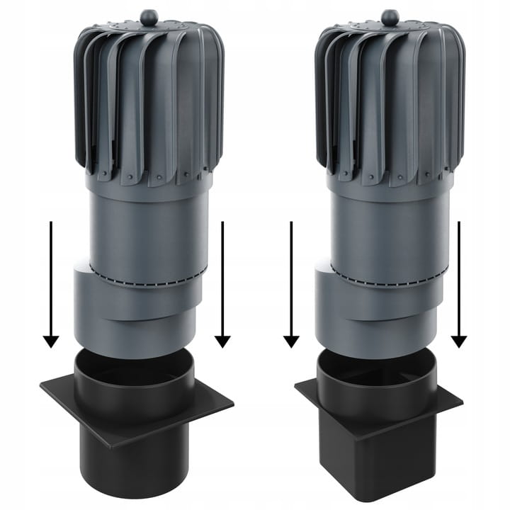 • Turbiny z tworzywa PP na łożysku kulkowym INOX zalanym najwyższej jakości olejem, zakończonej otworem fi 150 do zakończenia kanałów wentylacyjnych
