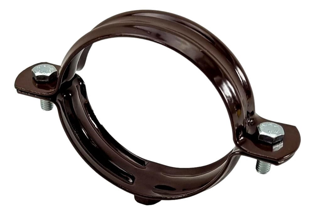 Element systemu rynnowego, wykonany z najwyższej jakości stali, malowany proszkowo. Służy do mocowanie rury spustowej do ściany budynku.