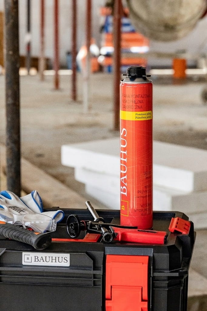 Pianka poliuretanowa Bauhus do zastosowań montażowo-uszczelniających całorocznie (możliwość używania od -10 do +30 stopni Celsjusza).