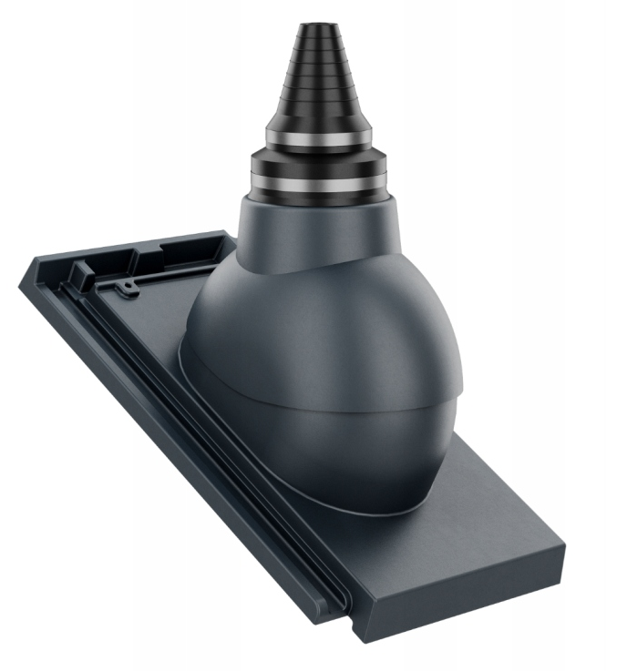 Przejście antenowe umożliwia łatwe i szczelne wyprowadzenie masztu antenowego ponad dach. Nasadka umożliwia dostosowanie otworu do średnicy masztu w zakresie 19-90mm.