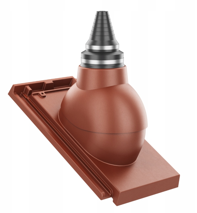 Przejście antenowe umożliwia łatwe i szczelne wyprowadzenie masztu antenowego ponad dach. Nasadka umożliwia dostosowanie otworu do średnicy masztu w zakresie 19-90mm.
