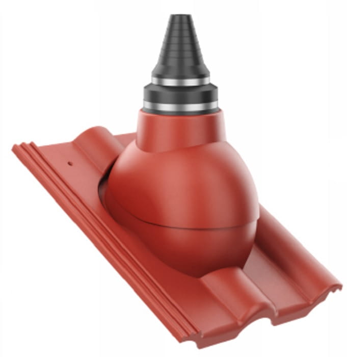 Przejście antenowe umożliwia łatwe i szczelne wyprowadzenie masztu antenowego ponad dach. Nasadka umożliwia dostosowanie otworu do średnicy masztu w zakresie 19-90mm.