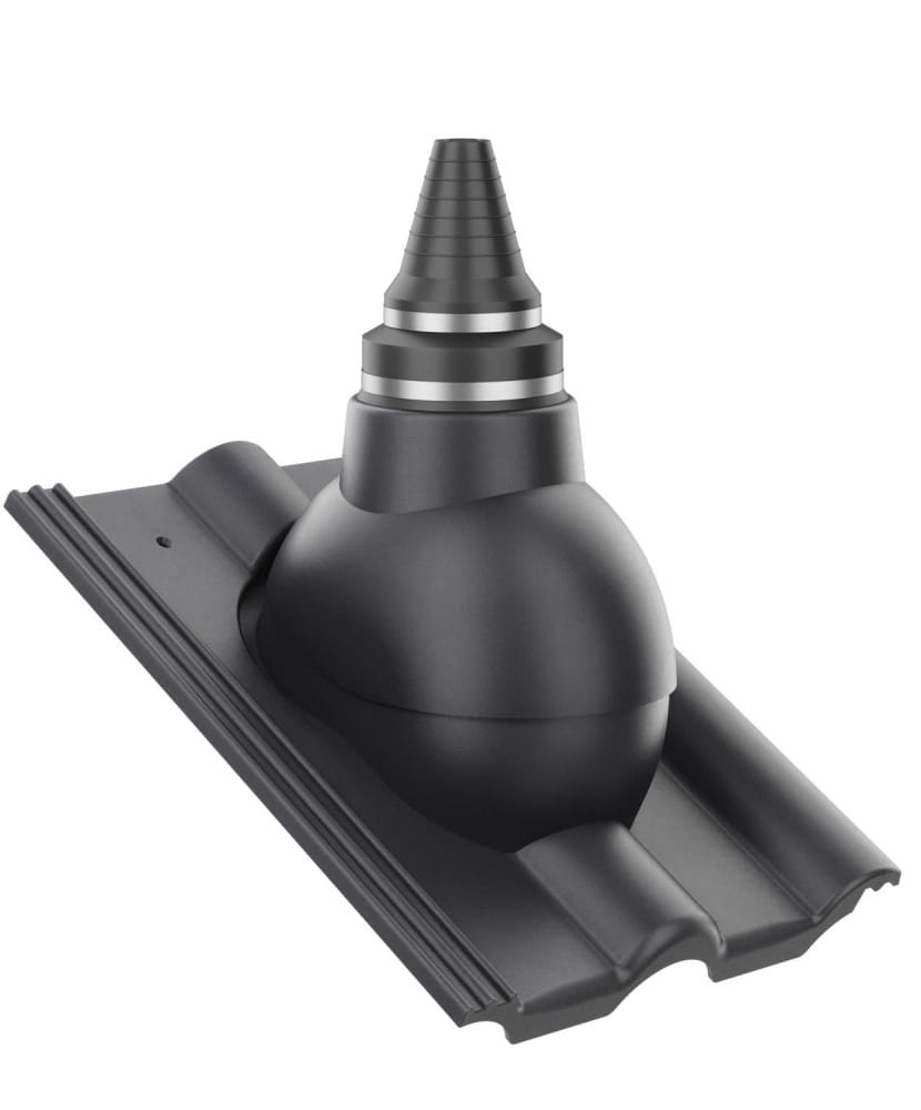 Przejście antenowe umożliwia łatwe i szczelne wyprowadzenie masztu antenowego ponad dach. Nasadka umożliwia dostosowanie otworu do średnicy masztu w zakresie 19-90mm.