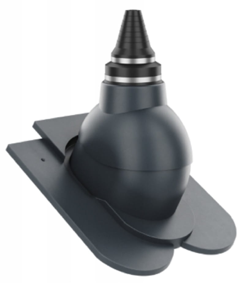 Przejście antenowe umożliwia łatwe i szczelne wyprowadzenie masztu antenowego ponad dach. Nasadka umożliwia dostosowanie otworu do średnicy masztu w zakresie 19-90mm.