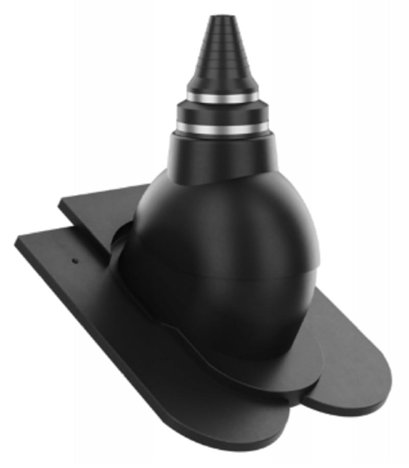 Przejście antenowe umożliwia łatwe i szczelne wyprowadzenie masztu antenowego ponad dach. Nasadka umożliwia dostosowanie otworu do średnicy masztu w zakresie 19-90mm.