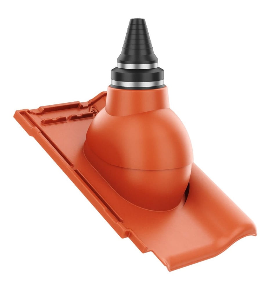 Przejście antenowe umożliwia łatwe i szczelne wyprowadzenie masztu antenowego ponad dach. Nasadka umożliwia dostosowanie otworu do średnicy masztu w zakresie 19-90mm.