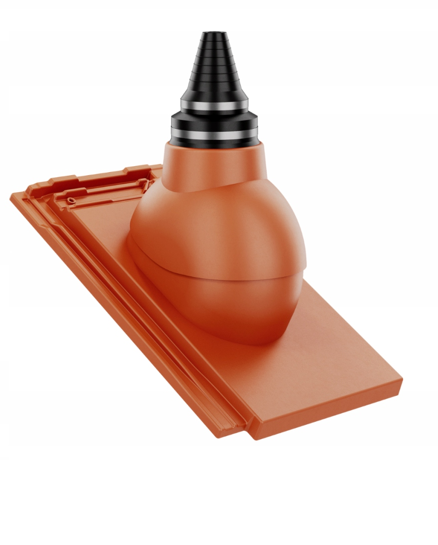 Przejście antenowe umożliwia łatwe i szczelne wyprowadzenie masztu antenowego ponad dach. Nasadka umożliwia dostosowanie otworu do średnicy masztu w zakresie 19-90mm.
