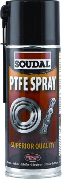 SOUDAL PTFE Spray preparat penetrująco-smarujący zawierający PTFE (teflon) do stosowania na elementach metalowych i z tworzyw sztucznych. Działa odpychająco na wodę i kurz, przedłużając żywotność obrabianych elementów.