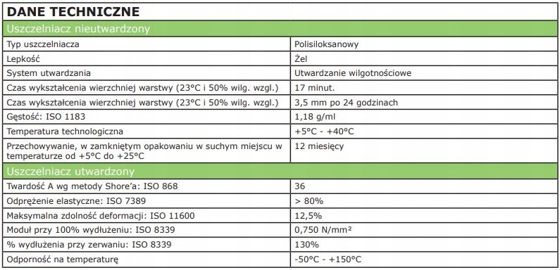 • Posiada wysoką odporność na starzenie, warunki atmosferyczne, wysokie i niskie temperatury